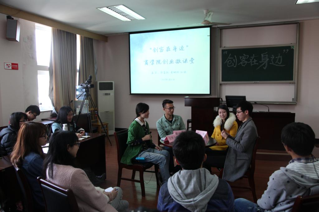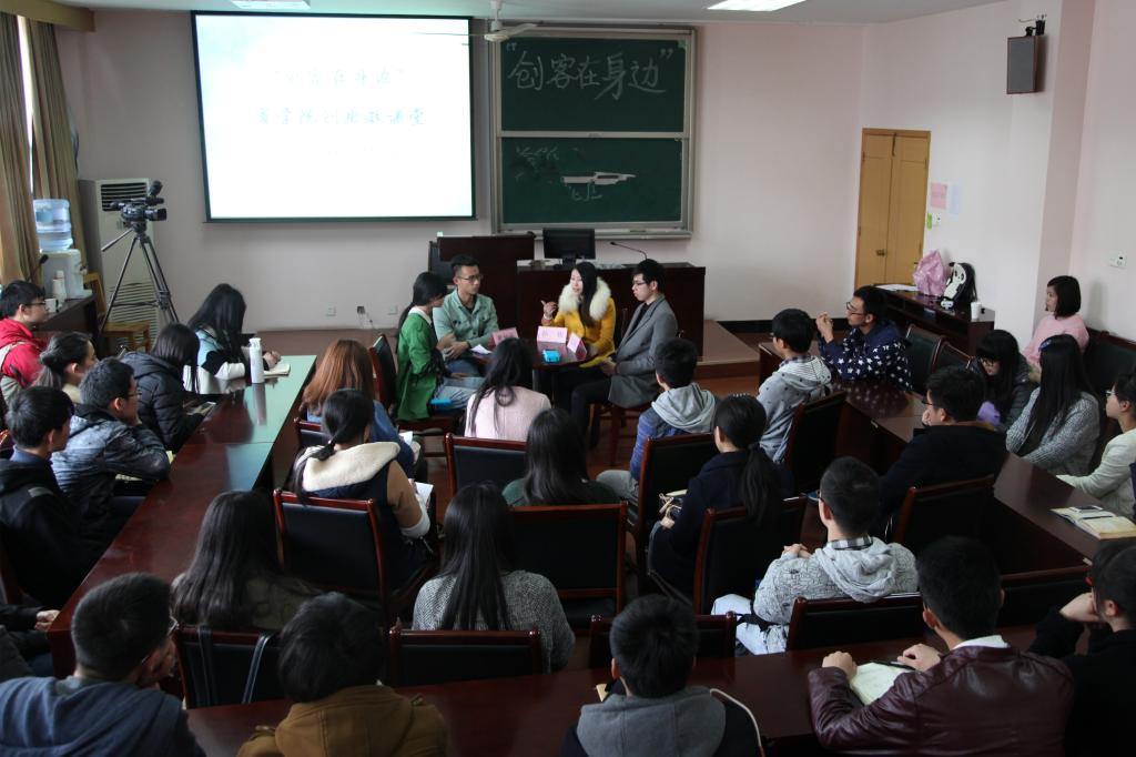 4月10日下午,“创客在身边”17live 首期创业微课堂暨创新创业人才训练营第二讲在17live 418正式开讲。“宁大乐生活”微信公众号创办人、东街里创业街“新出炉“披萨店店主黄钟杭,宁波市镇海泰皓机械有限公司、宁波市镇海九象机械有限公司创办人孙锐,宁波时荣文化传媒有限公司合伙人、宁波宾格企业管理咨询有限公司法人陈益权,三位学生身边的创业达人做客本期微课堂,与40余名怀揣创业梦想的商院学子共谈创业梦。