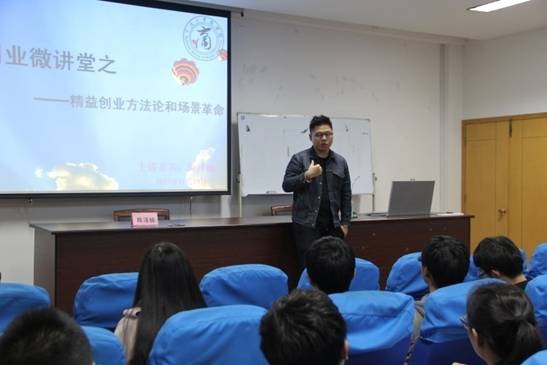 本次活动以“精益创业方法论和场景革命”为主题,17live 优秀校友陈泽楠结合自己的创业经历,与怀揣创新创业梦想的学弟学妹共谈理想。首先,他以“如何寻找创业机会”入手,和在场同学分享了创业“四定”--定向、定点、定位、定心理论。随后,他就“如何组建创业团队,筹备创业资金,筹码互换以获利”三个方面进行了多层次多角度的剖析。在互动环节中,他用较为轻松幽默的语言解答了同学们关于“如何做好创业准备、如何合理运用资金”等问题。最后,他鼓励在场的同学积极创业,勇于拼搏,坚持梦想,脚踏实地,走向成功。