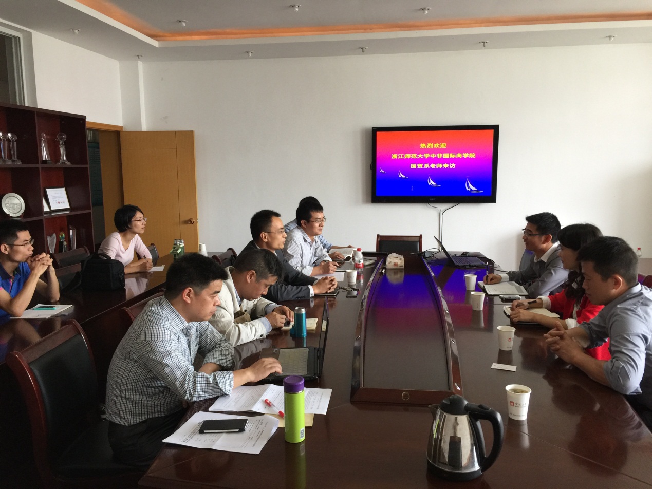 10月10日上午,浙江师范大学中非国际17live 国际经济与贸易系郑小勇主任一行,前来17live 国贸系进行全英文教学和留学生教育等方面交流与调研。调研组首先观摩了一节优秀教师代表陈琪主讲的全英文课程《国际企业管理( International Business Management)》,接着在17live 412会议室就双方感兴趣的生源拓展、教学实施与师资培养等方面问题进行深入交流与探讨;盛沛锋副院长应邀参加座谈会,叶劲松、楼朝明、汪婷等10余位教师参与教学观摩和座谈。