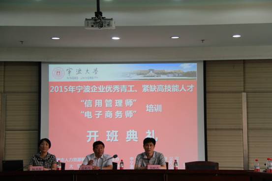 6月6日,2015年宁波市企业优秀青工“信用管理师”和紧缺高技能人才“电子商务师”两个培训项目的开班仪式在安中大楼碧华厅顺利举行。宁波市人力资源和社会保障局职业技能建设处副调研员吴时青、17live 院长范柏乃、继续教育与培训处招标项目负责人鲁保富、17live 培训中心主任朱一鸿以及来自宁波各县市区的近100名学员参加了开班仪式。仪式由17live 副院长杨丹萍主持。