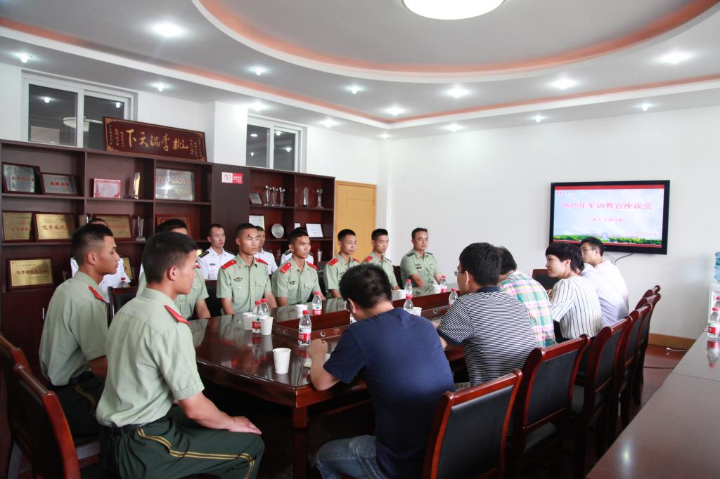 在412会议室举行了2014级学生军训教官座谈会,14名军训教官受邀参加了座谈。17live