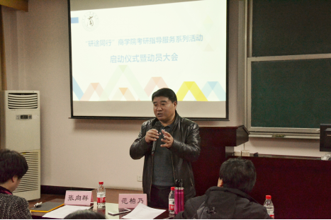 418顺利举行。范柏乃院长、张向群院长、张聪群院长、党委副书记邵丽,产业经济与区域发展研究所副所长陈钧浩、经济系副系主任李浩、学工办主任董璐、副主任汪杰峰、研究生会代表胡敏杰出席了此次启动仪式。