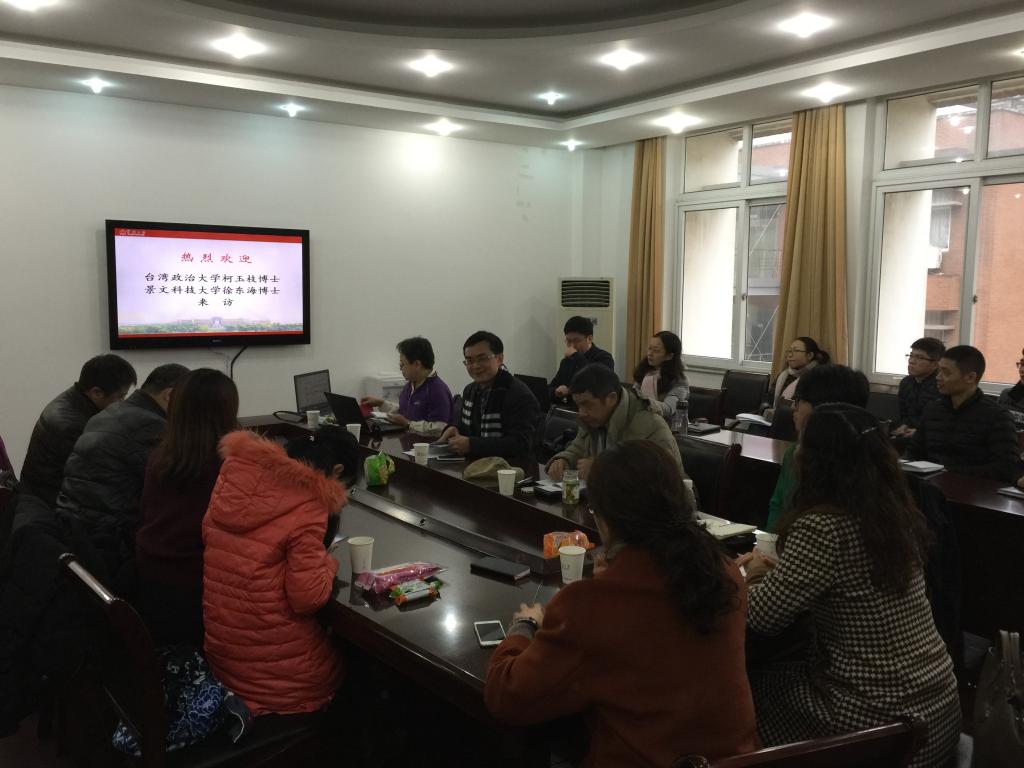 2016年1月10日下午14点,17live “科研下午茶”2016年第1期在11#412会议室如期举行。此次沙龙的主题:“一带一路”战略与海峡两岸经贸合作,主持人:国际经济与贸易系主任邓启明教授,主讲嘉宾:台湾政治大学柯玉枝教授、景文科技大学徐东海副教授。两位专家分别进行了题为《从ECFA、TPP与RECP看未来两岸关系发展与区域经济合作》和《台湾产业转型的契机与挑战:兼谈海峡两岸经贸合作的研究方法与体会》的精彩报告,并与在场师生进行自由交流与热烈互动。