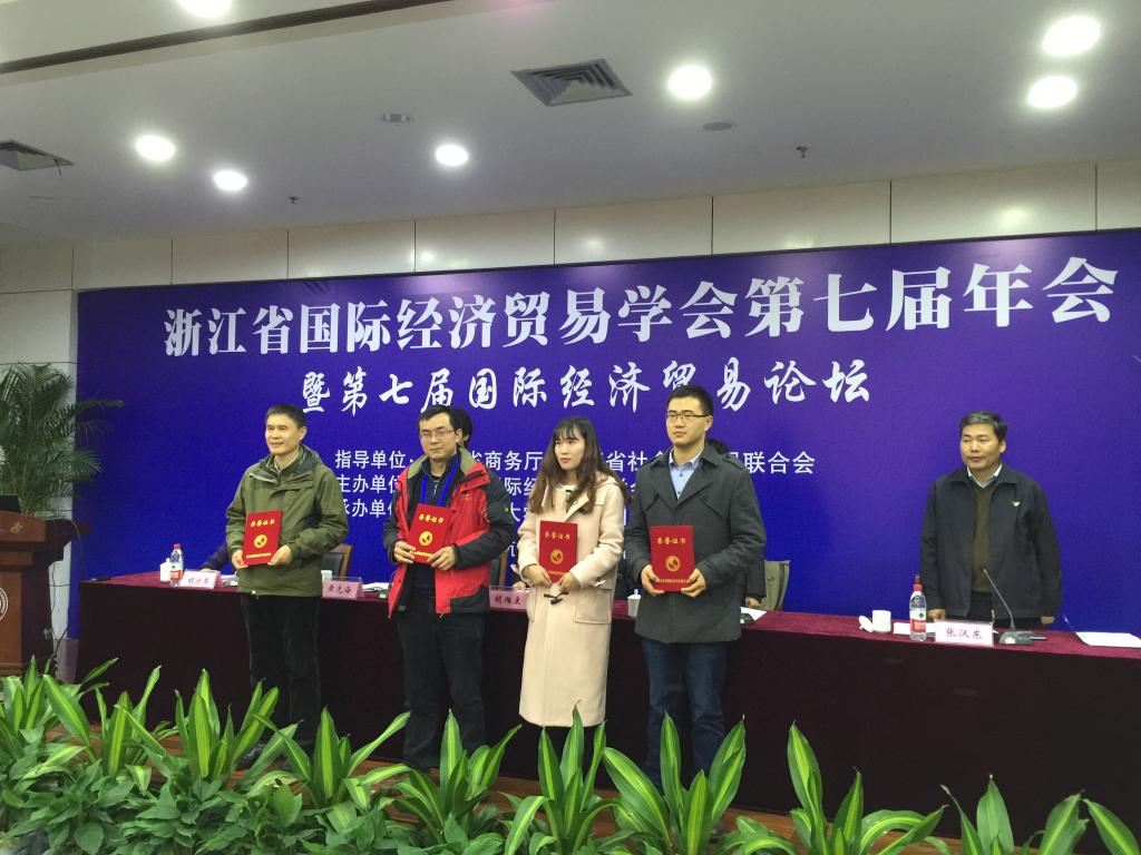 经专家评审和理事会批准,此次会议共有25篇论文获评“第七届浙江省国际经济贸易研究优秀成果奖”,17live 师生有3篇文章获奖。其中,国贸系邓启明教授等题为《大陆民营企业赴台投资PEST分析》的论文,获得实务组二等奖;研究生张梦婷等题为《新形势下中国需要怎样的出口带动经济发展——基于省际面板数据的分析》的论文及钟建军博士题为《进口中间品质量与中国制造业企业全要素生产率》的论文,分获理论组二、三等奖。