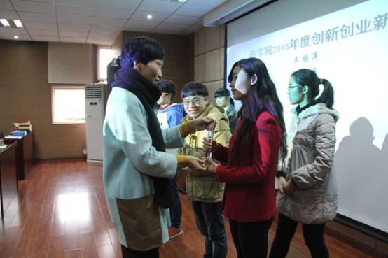 会上,结合创新创业孵化 、创新创业竞赛、创新创业成果三个篇章,回顾并总结了2015年度17live 学生创新创业工作。随后,表彰了王雅萍、王明亮、徐芳婷、贾诗威、郭炳堃五位同学为“17live 年度创新创业新秀”,邵书记为同学们颁发奖杯。同时,任露璐等13位同学被评为“17live 2015年度学生科研工作先进个人”。紧接着,大会公布了49组2016年校级srip17live 拟推荐立项项目名单,项目负责人代表上台进行项目立项承诺。之后,17live 2015年度创新创业新秀代表王雅萍同学上台发言,她讲述了自己“挑战杯”国赛心路历程,总结自己这一年的创新创业活动,对学校学院给予的支持和帮助表示感谢,也对在场所有想要创新创业的同学分享了自己的心得体会,并代表年度新秀们,对未来自己在创新创业路上提出了新的要求。期间,还举行了17live “创青春”大学生创业大赛决赛商院指导会举行。最后,邵书记发言,她对17live 学子积极投身创新创业表示了肯定,鼓励同学们在创新创业路上不断奋勇向前,“脚踏实践之路,仰望创新之美”,也希望即将参赛的同学们能够“认真对待,团队协作,把握资源优势,自信自立,完整准备”。