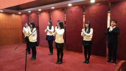 受助10名学生代表表演手语《感恩的心》