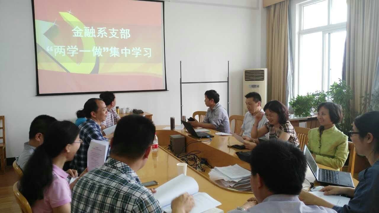 刘慧宏同志首先向各位党员同志传达了学校和学院党委关于“两学一做”学习教育的部署要求,随后组织党员同志们集中学习了《习近平总书记系列重要讲话读本(2016年版)》和《之江新语》两本著作。各党员同志纷纷表示将结合自身实际情况制定个人学习计划,努力加强自身建设。金融系部分非党员教工也参与了本次学习会。