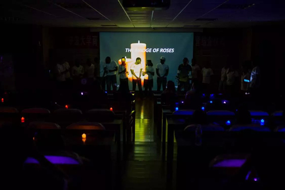 6点左右,留学生们抵达17live 。纪念仪式在集体合照后开始。在黑暗的教室中,每位参与者一盏盏点亮了手中颜色各异的电子蜡烛,随着蜡烛的点亮,教室内的氛围立刻开始变得宁静而肃穆。这些蜡烛寄托着纪念者对亡者的追思,更代表着对未来的希望。接着,22名留学生代表上台用英语、法语和卢旺达语宣读了22条希望留言,表达卢旺达人民对振兴祖国和建立安全繁荣的未来的决心。随后,美妙的音乐声响起,5名卢旺达同学上台以极富感染力的演绎展示了一出舞台剧,描述了战后饱受摧残的卢旺达民众心灵上所受到的痛苦和伤害,表现了伟大民众的坚强与包容,让在场的观众无不为之动容。最后,卢旺达学生现场诵读了在屠杀中遇难的100个受害人的名字。这每个名字的背后都代表着一个曾经鲜活的面孔,和一个家庭。每一个名字都警醒着世人这段血淋淋的历史。