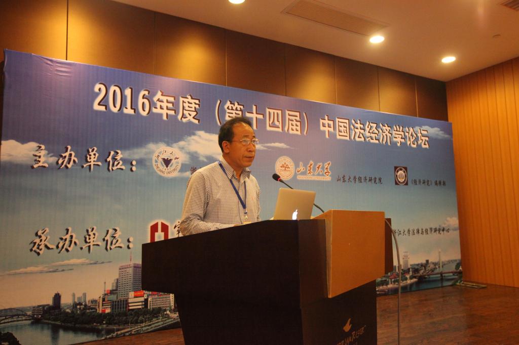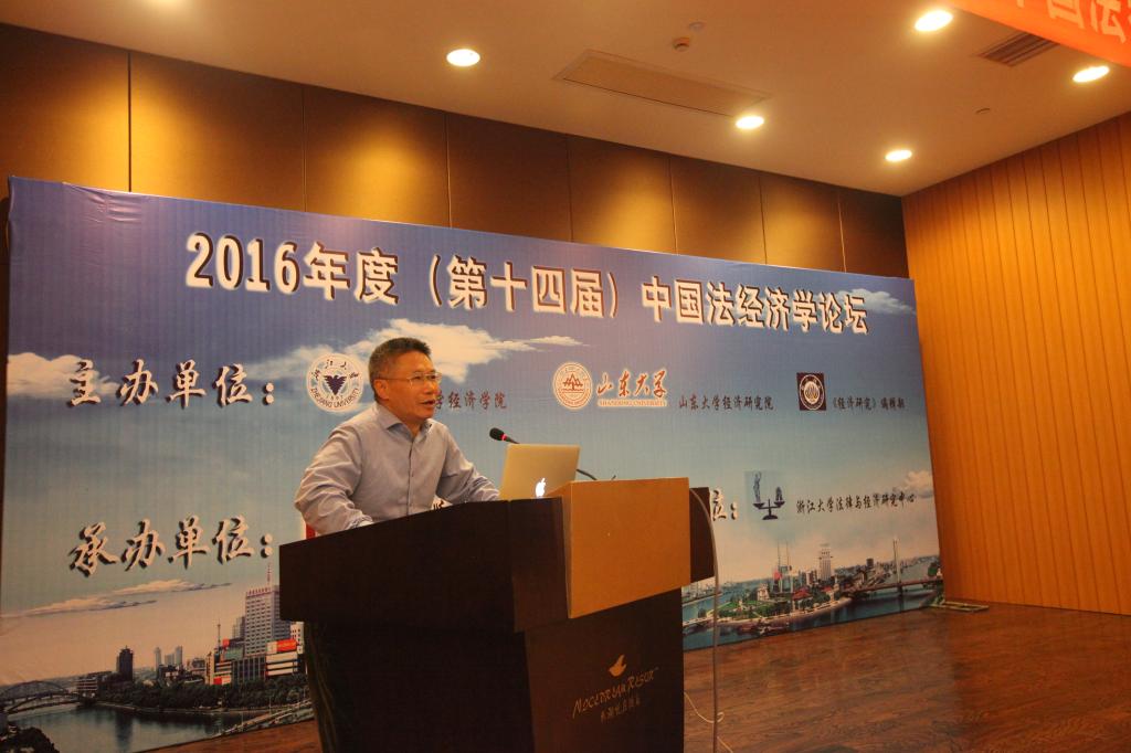 颁奖仪式结束后,史晋川教授对本届论坛做了总结发言。首先,史晋川教授介绍了中国法经济学论坛举办的目的和意义,对本届论坛交流论文的质量给予高度评价,并再次对获奖论文的作者表示祝贺。接着,史晋川教授对中国法经济学领域的学者提出中肯建议,鼓励经济学者更多关注法律、更多重视机理分析,从而更好促进经济学和法学的学科交叉融合。最后,史晋川教授对本次论坛的会务工作给予高度评价,再次感谢论坛承办方的努力工作,并欢迎大家明年继续热情参与中国法经济学论坛。至此,第十四届中国法经济学论坛(2016)圆满落幕。