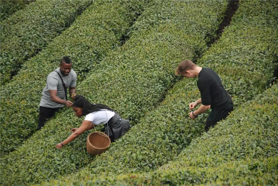 不少国际学生都是第一次来到中国的茶园,从来没有见过茶树的他们感到既新鲜,又兴奋,纷纷拿出手机在茶园中拍照留念。来自波多黎各的Andrea带着远道而来的妈妈来参加了这次活动。母女俩从来没有见过茶树,她们很认真地在茶田间挑着适合的茶芽,将符合标准的茶叶摘下,放到自己的竹篮里。母女俩齐心协力,不一会儿就装了小半篮。来自印度的Ahmed和来自印尼的Suhandi还在茶园里接受了鄞州电视台记者的采访。同学们都表示,自己十分享受在茶园劳作的感觉,同时觉得这能进一步帮助自己了解中国,了解当地民俗。