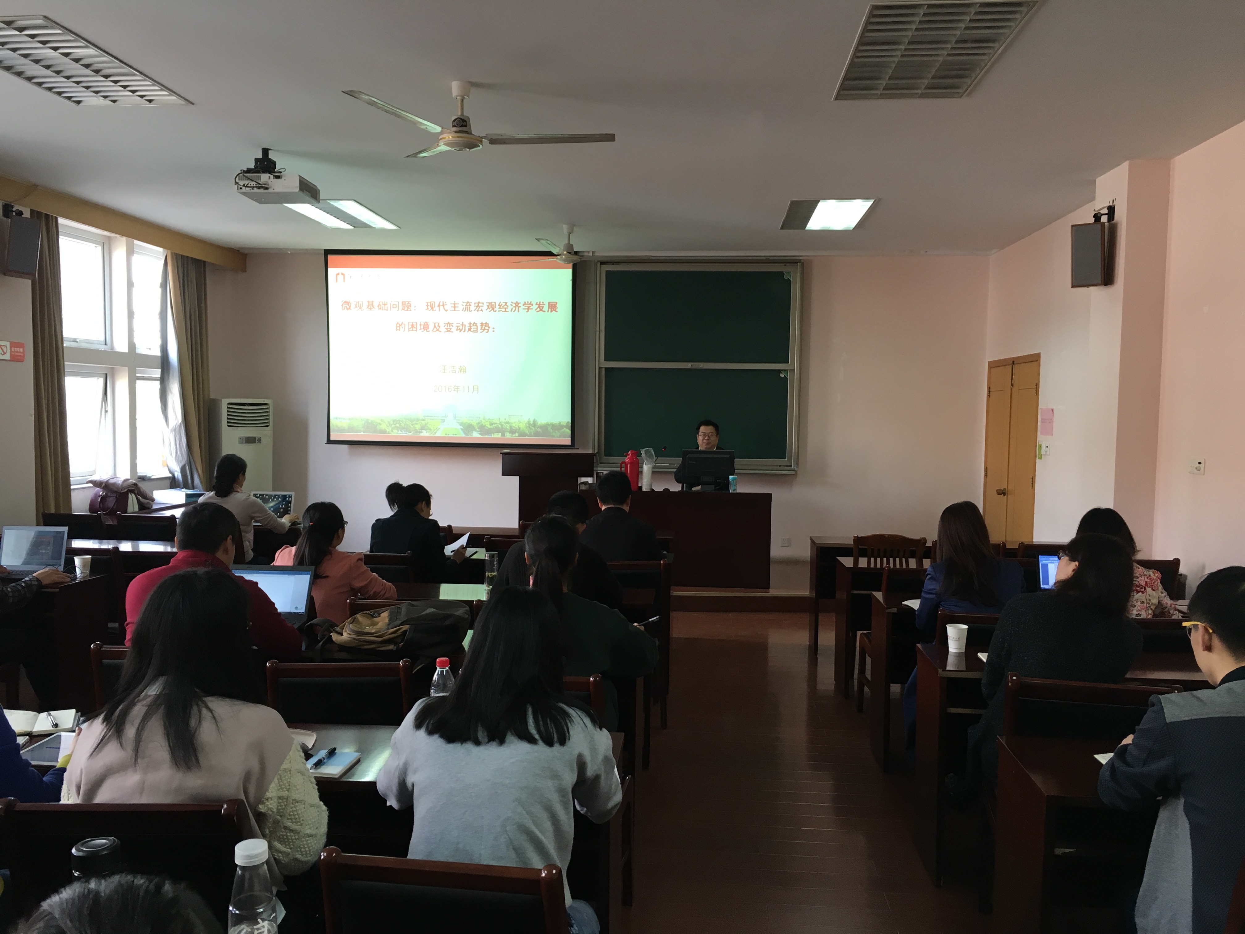 2016年11月16日上午,17live 学术沙龙(2016年第11期)在11#418会议室举行。17live 党委委员、产业经济研究所教授、博士生导师汪浩瀚做了题为《微观基础问题:现代主流宏观经济学发展的困境及变化趋势》的精彩学术报告。学术沙龙由产业经济研究所所长胡求光教授主持,17live 院长助理陈涛教授以及17live 师生50余人参加了此次学术活动。