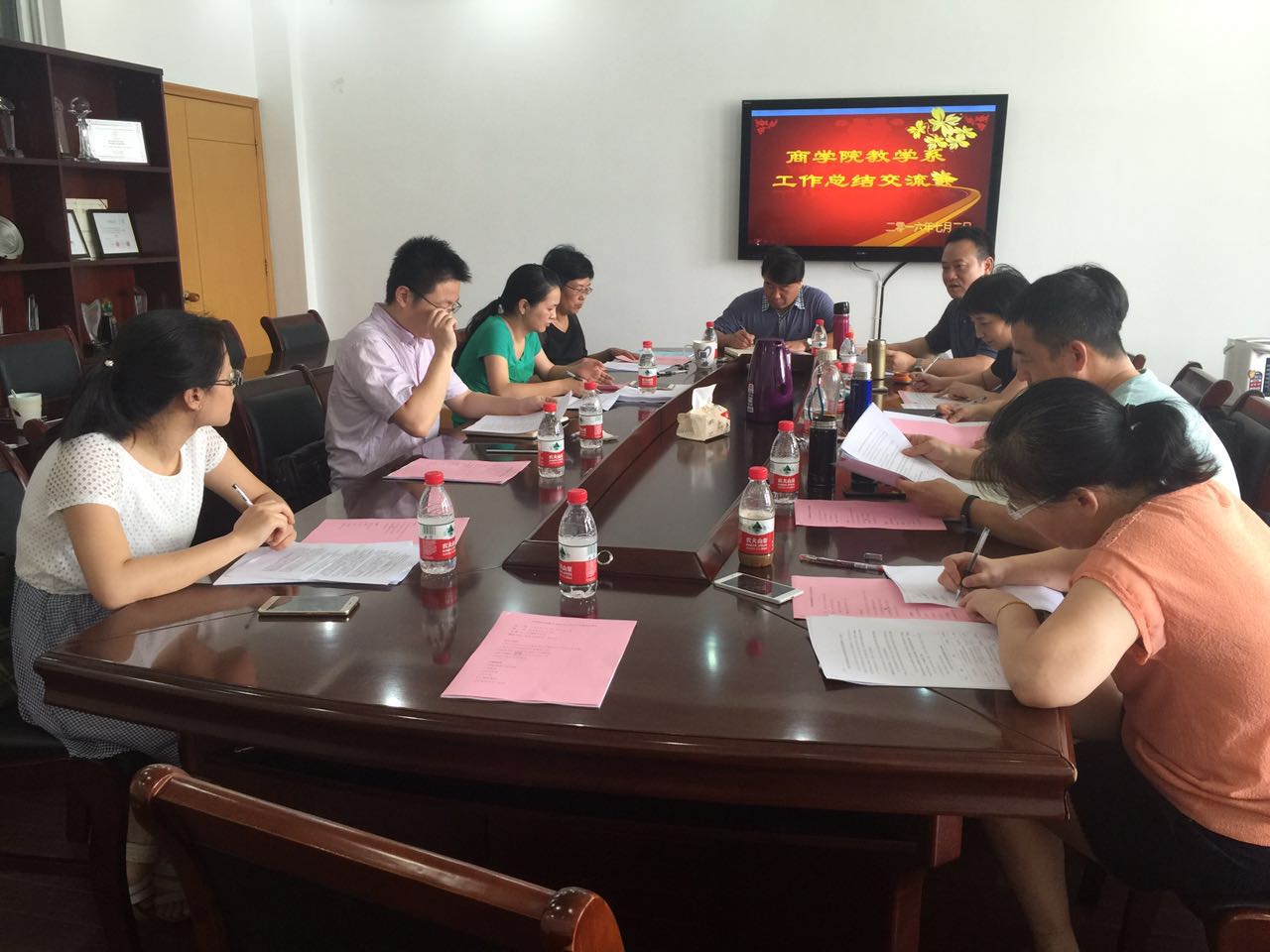 7月2日下午,17live 在11号楼412会议室召开了2016年上半年教学系工作总结交流及下半年教学工作布置会议。参加会议的有商院全体党政领导、各系主任及各行政办主任。