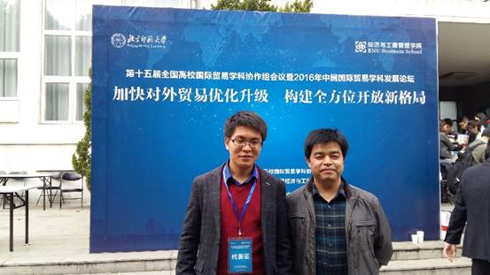 2016年10月 21-23日,第十五届全国高校国际贸易学科协作组会议暨 2016 年中国国际贸易学科发展论坛在北京师范大学召开,会议由全国高校国际贸易学科协作组秘书处与北京师范大学经济与工商管理学院联合主办。本次会议以“加快对外贸易优化升级、构建全方位开放新格局”为主题,国际贸易研究所叶劲松和黄远浙两位老师受邀参加了会议,期间积极参加“利用外资专题”、“对外直接投资专题”和“学科建设与人才培养专题”等专题论坛,与来自全国各地高校的专家进行了学术交流与经验分享。