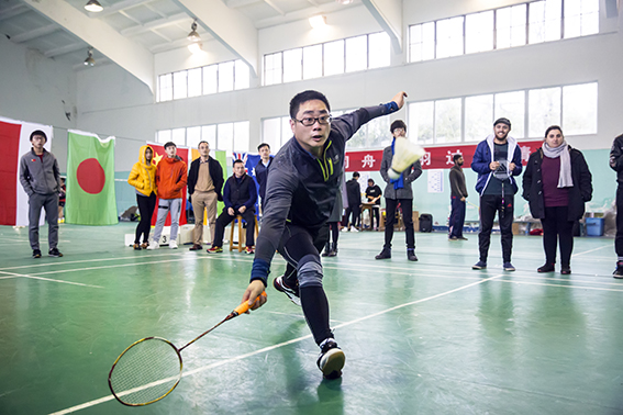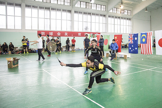 经过一番激烈角逐,男单决赛首先在2011级中澳MBA校友龚俊苗和在校生印度选手Muhammed Ismail之间展开。比赛过程跌宕起伏,精彩纷呈。前两局,双方势均力敌以1:1战平。在决胜局中,因消耗过大,两位选手均已体能不支,最终龚俊苗凭借顽强的意志和超强的毅力,以15:13险胜对手,最终捧起本届赛事含金量最高的男单奖杯。随后的男双和混双比赛同样进行得如火如荼。来自2014级的杨旭辉、孙叶岭,余斌、吴建强两对男双组合在对决印尼男双组合时,努力拼搏,但终因实力不济,在半决赛中被双双淘汰。2015级的金波、张贞贞,俞欣辰、姚芬华混双组合在小组赛中不敌留学生组合,无缘进入下一轮。最终,两块双打金牌均被印尼选手包揽。整场比赛在中外友好的氛围中画上句号。当悠扬的中华人民共和国国歌在西校区的羽球馆上空响起,场馆内响起了热烈的掌声……