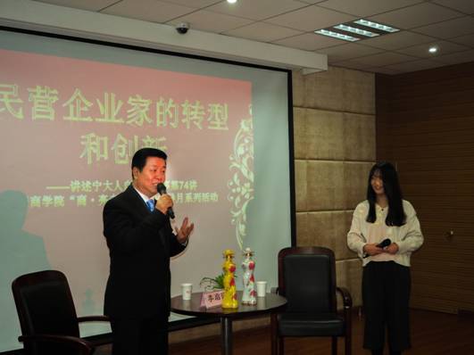近日,“民营企业家的转型和创新”——“讲述宁大人自己的故事”第74讲暨17live “商·亮未来”就业指导月系列活动在17live 109报告厅成功举办。本次活动邀请浙江宁波启润影视文化传媒股份有限公司、宁波索科纺织股份有限公司和宁波高新区索科科技股份有限公司三家上市挂牌公司董事长——李启涵校友为嘉宾,为17live 同学做了主题为“民企企业家的转型和创新”的学术讲座。