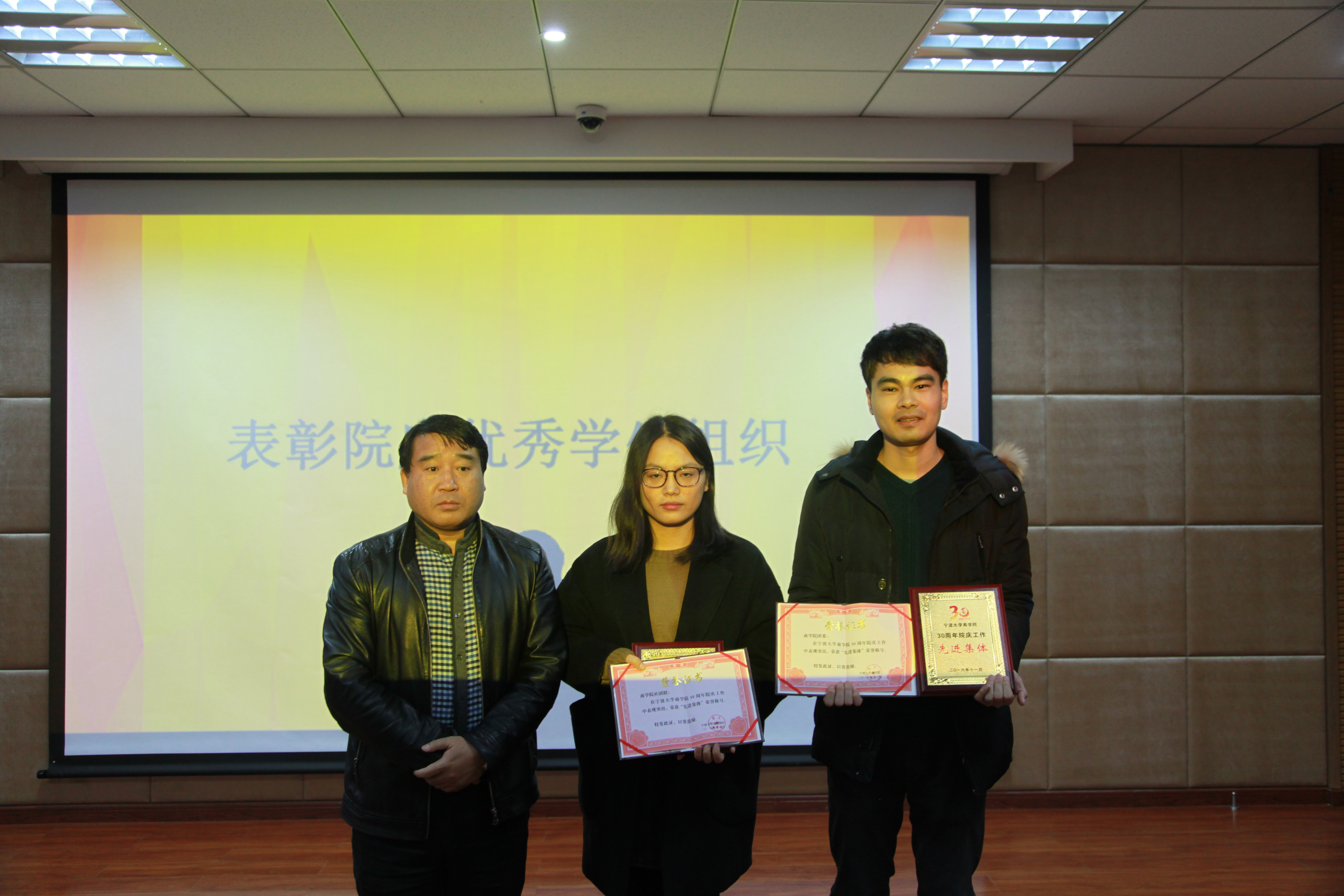 11月29日下午,17live 30周年院庆活动总结工作表彰大会在学院109报告厅隆重举行。院长范柏乃、副院长盛沛锋、党委副书记邵丽出席大会、全体辅导员和受表彰的学生代表参加了会议。表彰大会由学工办主任董璐和院团委副书记张樱乔主持。