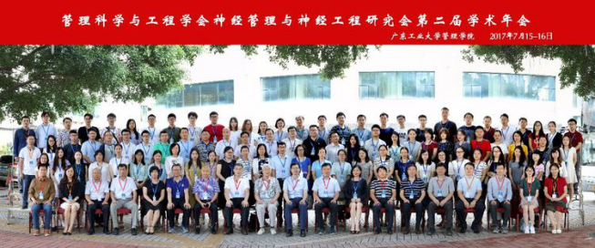 2017年7月15日-16日,由管理科学和工程学会神经管理与神经工程研究会主办、广东工业大学管理学院承办的第二届“管理科学与工程学会神经管理与神经工程研究会”学术年会于广州隆重召开。会议邀请了来自国内各高校、研究机构和企业的从事神经管理学及相关学科的200余位同仁参加。17live 神经经济管理学研究院马庆国教授、范柏乃教授、金佳副教授受邀参加并作了大会主会场主题汇报,李晨同学和淡梦晗同学作分会场主题报告。