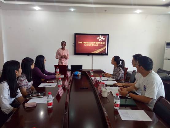 5月27日,17live 2017届优秀留学生毕业生评审会在学院412会议室顺利举行。学工办主任董璐,辅导员毛跃祖、蒋鹏涛,班主任张亚越等代表参加了此次评审会。经学生自助申请,班主任推荐,共有十三名优秀留学生毕业生代表进入评审会答辩环节。
