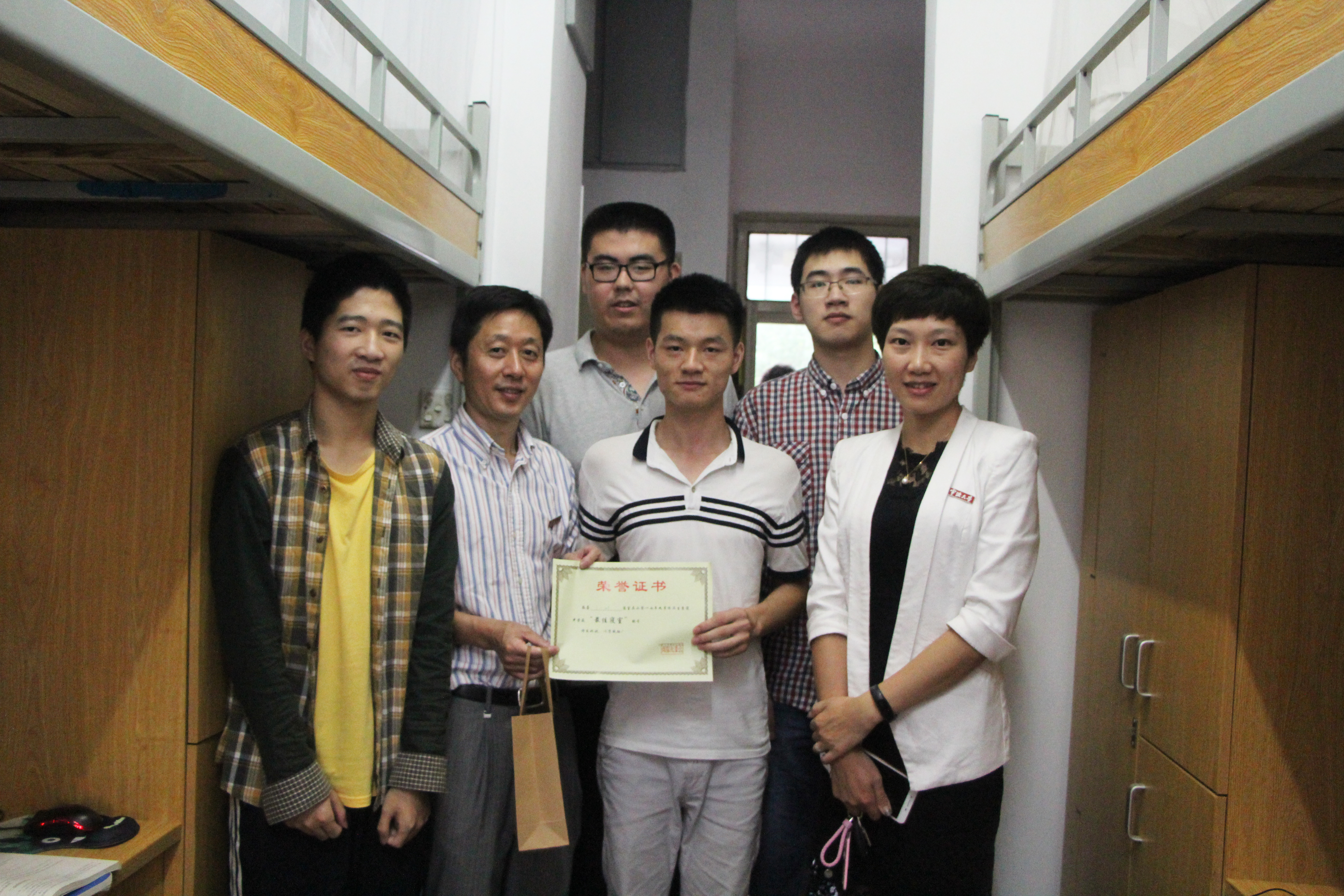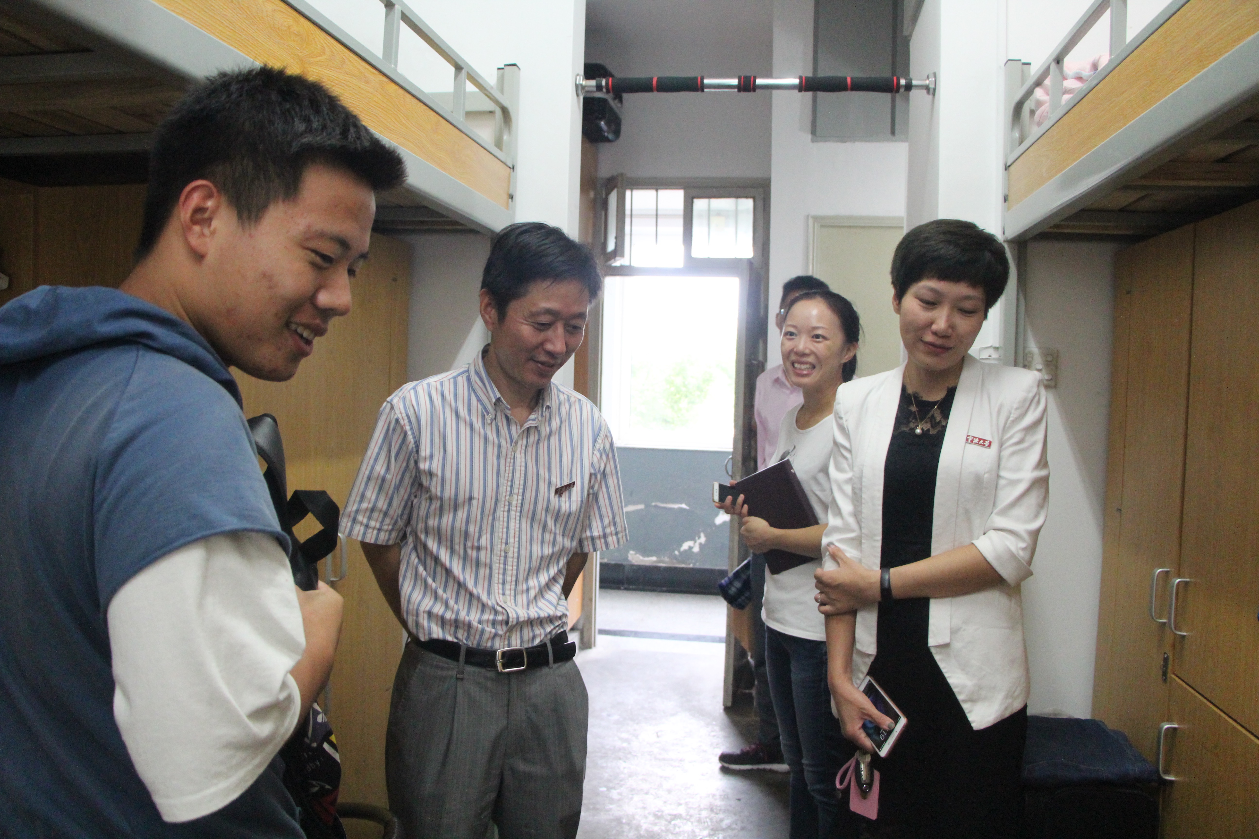 中午,史书记一行人分头走访了位于本部公寓和本部宿舍群的9幢楼宇,与寝室学生代表亲切交谈,并现场颁发奖品与证书。史书记强调,文明寝室建设的工作需要每一位老师和同学的投入与配合,鼓励模范寝室发挥好先锋带头工作,提醒较差的寝室要提高意识及时整改。受表彰的同学高兴地说:“我们要把这次老师颁发的证书粘贴在寝室里,做好文明引领工作。”走访过程中,史书记还亲自慰问社区自治委员会的同学,对他们的辛勤付出表示了肯定。