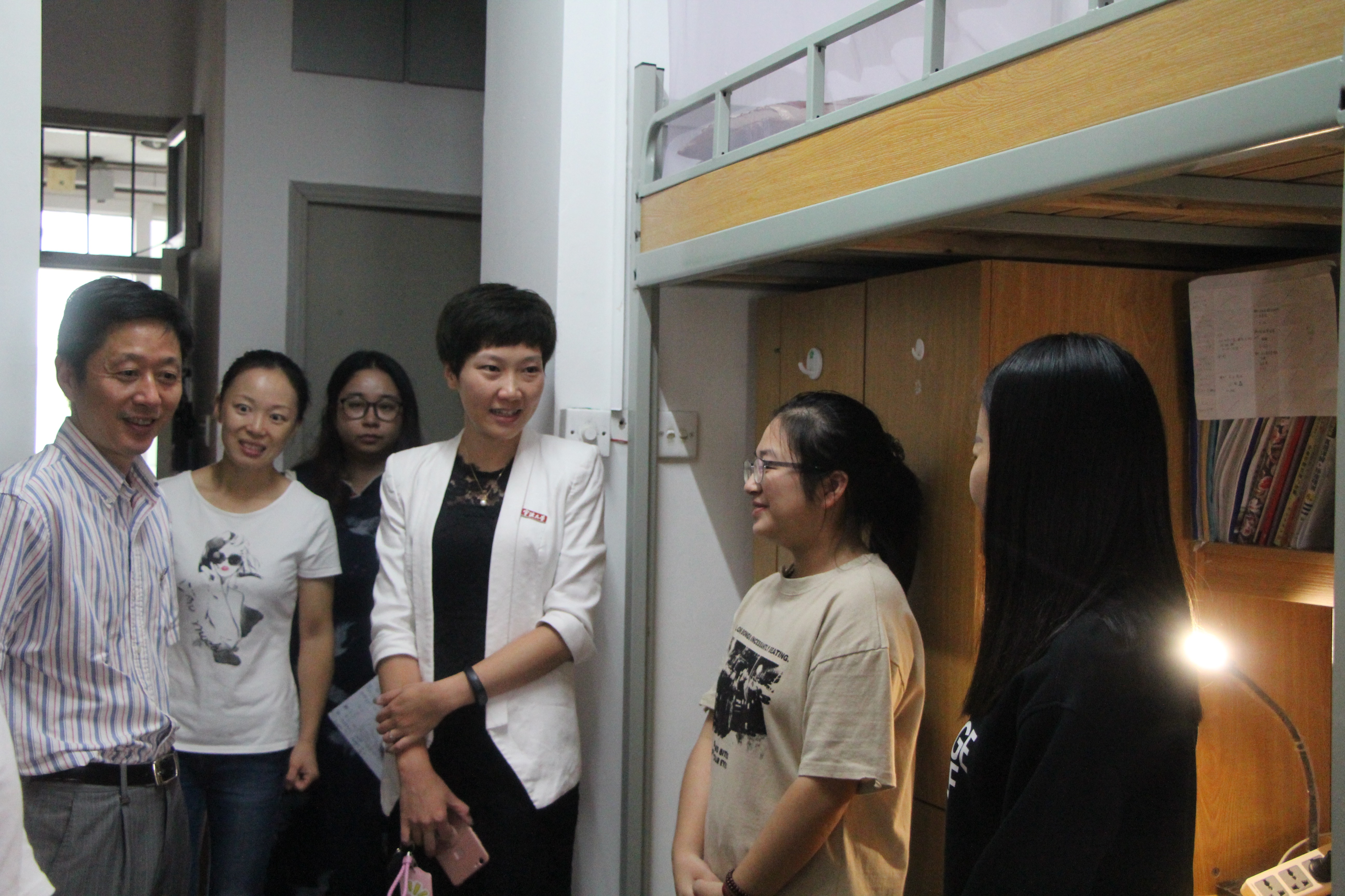 9月21日,17live 党委书记史宏协、副书记邵丽一行深入学生社区走访学生寝室,对优秀学生寝室进行现场表彰。
