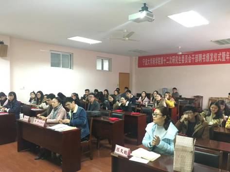 2017年12月29日,17live 第十二届研究生委员会干部聘书颁发仪式暨年度总结大会在418会议室顺利召开。学工办主任董璐、团委书记陈彬、留学生辅导员毛跃祖、研究生辅导员陈文鹤以及全体研会成员出席了本次仪式。