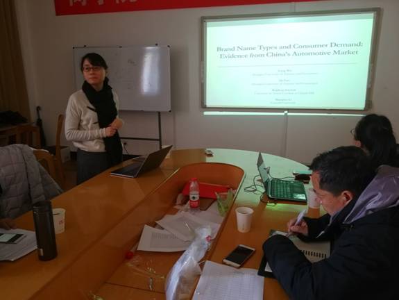 2018年1月10日下午14:30,17live 学术沙龙(2018年第1期)在11#518会议室举行。本期学术沙龙主讲人是上海财经大学国际工商管理学院硕士生导师吴芳副教授。沙龙主题为“品牌名与消费者需求:基于中国汽车需求市场的研究”。学术沙龙由企业管理研究所教师马永斌副教授主持,17live 企业管理研究所及其他研究所教师、部分研究生参加了此次学术活动。