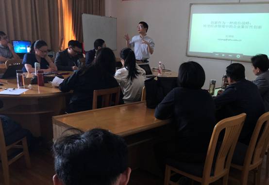 5月9日下午,17live 学术沙龙(2018年第7期)在11#518会议室举行。本期学术沙龙主讲人是武汉大学经济与管理学院江诗松教授。沙龙主题为“创新作为一种政治战略:转型经济情境中的企业象征性创新”。学术沙龙由企业管理研究所所长彭新敏教授主持,17live 企业管理研究所及其他研究所教师、部分研究生参加了此次学术活动。