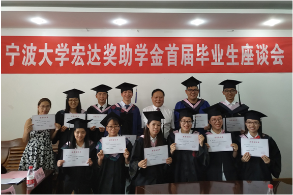 会上,陆汉幸董事长向在场的毕业生同学颁发了获奖证书,并合影留念。在场毕业生逐一汇报了自己四年的收获,并亲手写下一封封信件表达自己对宏达奖助学金最诚挚的感谢,制作成礼盒当场献给了陆汉幸董事长。陆汉幸祝贺同学们顺利毕业,鼓励同学们在社会大学中继续保持学习的习惯,将职场作为学习的新起点。在职场中,要保持勤奋,做到口勤手勤脚勤;要发挥创新精神,时刻准备着抓住机会;要战胜自我,树立我为人民做贡献的崇高理想。