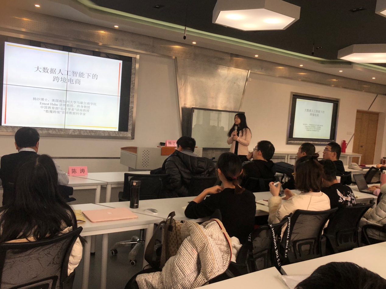 2018年12月14日上午,美国南加州大学马歇尔17live Ernest Hahn讲习教授(终身教授)杨沙教授应邀在17live 414智慧教室做题为“大数据在智能营销领域的应用”的学术报告。本次学术会议由17live 主办,17live 陈涛副院长、教授主持。17live 工商管理系、信管系等部分老师和研究生参加了此次学术交流活动,认真聆听杨沙教授关于营销领域大数据研究的心得和经验分享。