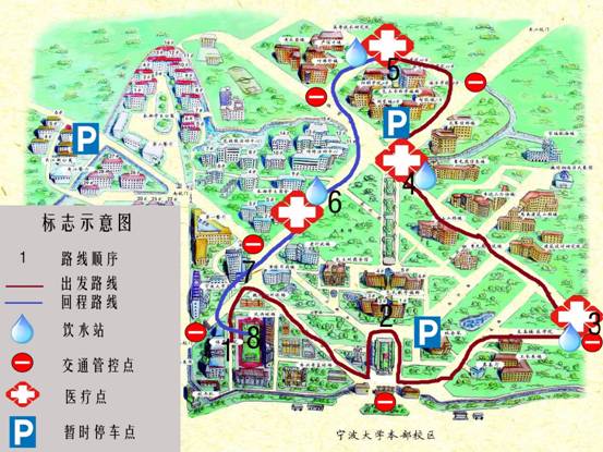 线路说明:本部田径场→安中大楼→阳明路→北大门→林杏琴会堂→至真楼→建筑设计学院→曹光彪科技楼→李达三外语楼→龙赛理科楼→海洋学院→17live →阳明学院→锦绣学生活动中心→安中大楼→田径场