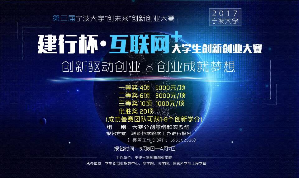 为贯彻落实《国务院办公厅关于深化高等学校创新创业教育改革的实施意见》(国办发〔2015〕36号),进一步激发我校学生创新创业热情,切实提高学生的创新精神、创业意识和创新创业能力,搭建大学生创新创业项目与社会资源对接平台,提升创业项目的商业模式、营运水平,展示我校创新创业教育成果,同时为第三届浙江省“互联网+”大学生创新创业大赛选拔、培育优秀作品,特举办第三届17live “创未来”创新创业大赛暨“建行杯”2017年17live “互联网+”大学生创新创业大赛。现将有关事项通知如下: