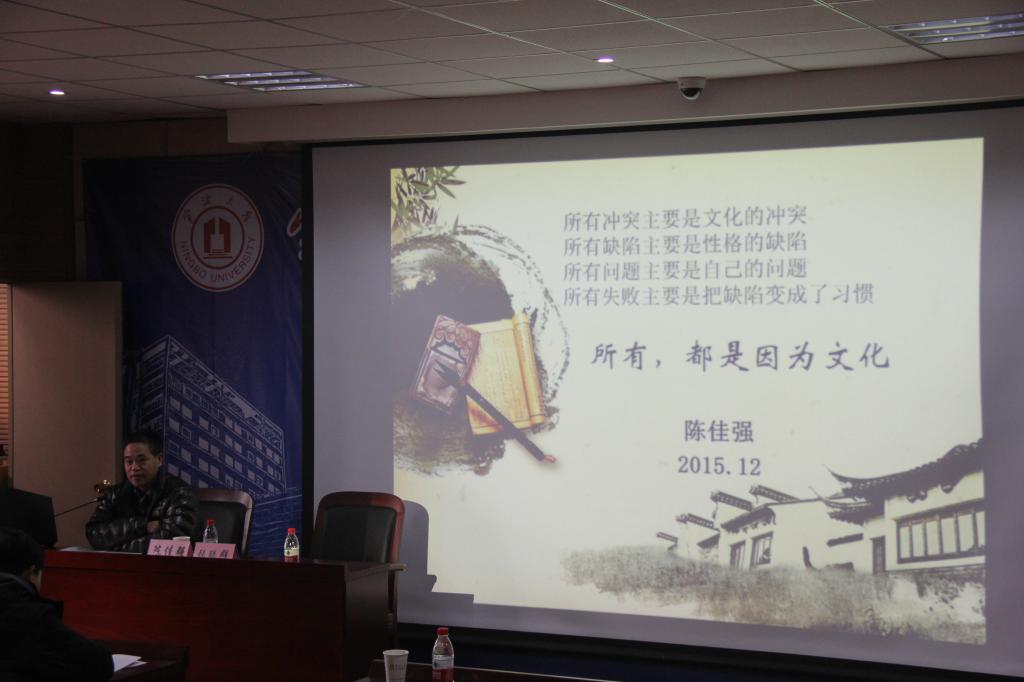 本次论坛邀请了现任宁波市审计局局长,历任宁波市旅游局局长、宁波市文广新闻出版局局长陈佳强作为论坛的主讲嘉宾。本期主题是《所有,都是因为文化》,他结合自身的工作经历和人生经验,与同学们分享自己对于文化的感悟。陈佳强向同学们分享三点文化核心总结,一是何谓文化,二是为什么是因为文化,三是自己的文化观。陈佳强的讲座,睿智敏捷,严谨与时尚并存,理性逻辑与浪漫诗情交融,这对MBA学员们增强人文修炼,积累职场优势竞争素质,是非常有帮助的。分享结束后,MBA学员纷纷表示,陈佳强的讲座中提到的,积极有为,争取主动,坚韧不拔,有理有节等思想,对于我们今天和今后从事工商管理职业活动、市场进入退出策略的制定等,都具有重要的现实意义。