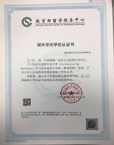本科大四毕业生:2020年8月赴波尔多学习,2021年6月毕业,获得硕士文凭。